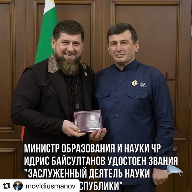 Уважаемый Рамзан Ахматович, ДОРОГОЙ БРАТ!Выражаю Вам искренние слова благодарности за такую высокую оценку моих скромных трудов. Получение почётного звания «Заслуженный деятель науки Чеченской Республики» - это большая честь и гордость для меня. Каждый из членов команды Первого Президента ЧР, Героя России АХМАТА-ХАДЖИ КАДЫРОВА (Дала гIазот къобала дойла цуьнан), ясно понимает, что все наши сегодняшние успехи и достижения стали закономерным результатом созидательного пути Ахмат-Хаджи Кадырова, который по воле ВСЕВЫШНЕГО привёл чеченский народ к миру и процветанию. Продолжая сегодня этот путь именно Вы, ДОРОГОЙ БРАТ, стоите на передовой всех самых важных достижений нашей республики. Благодаря Вам наша система образования выходит на новый современный уровень, совершенствуется научно-просветительская деятельность, создаются наилучшие условия для развития подрастающего поколения. Ещё раз выражаю глубокую признательность за оказанное мне внимание! Дала дукха ваха войла Хьо, ТХАН ЛАРАМЕ ПАЧЧАХЬ!
