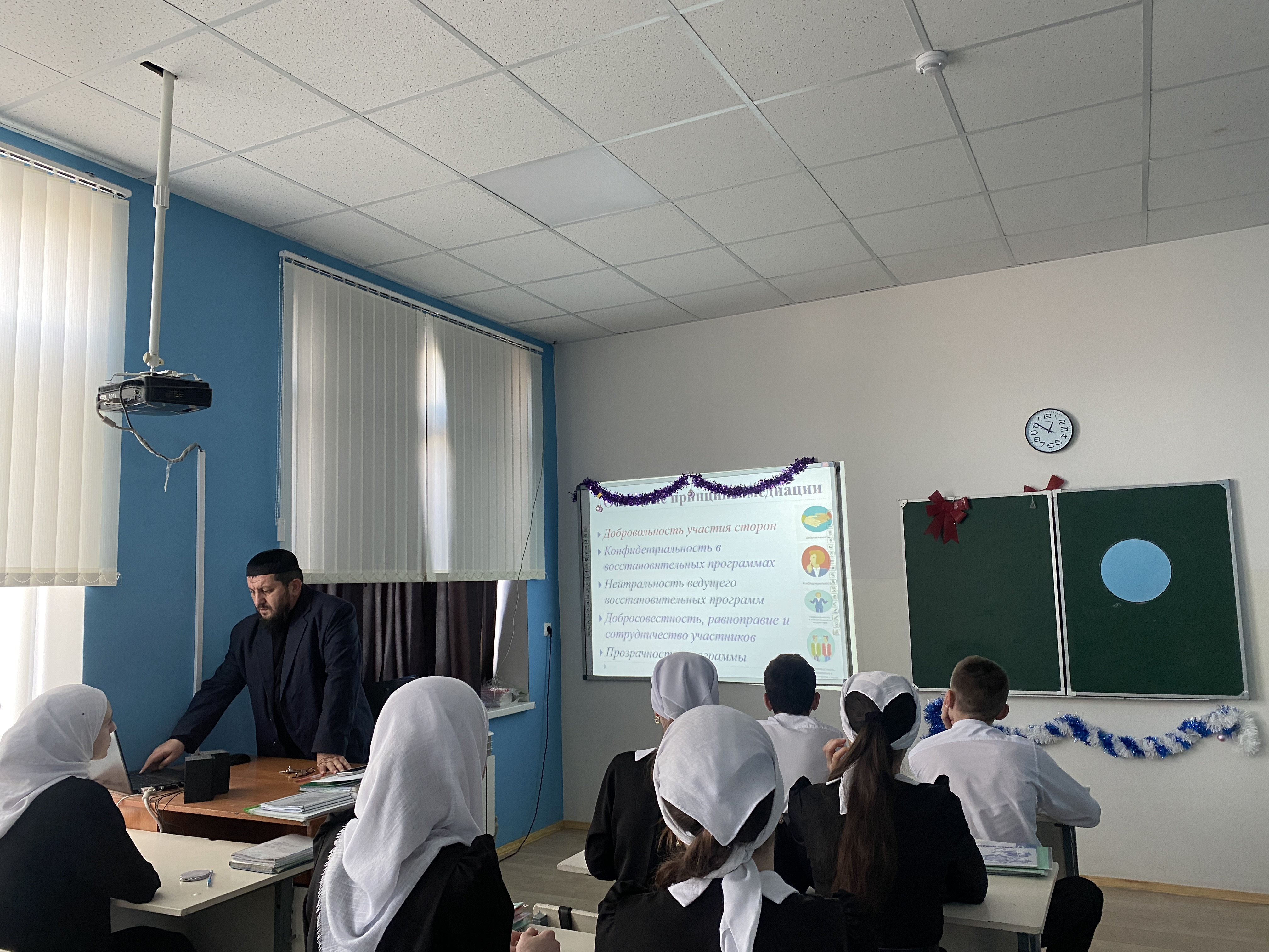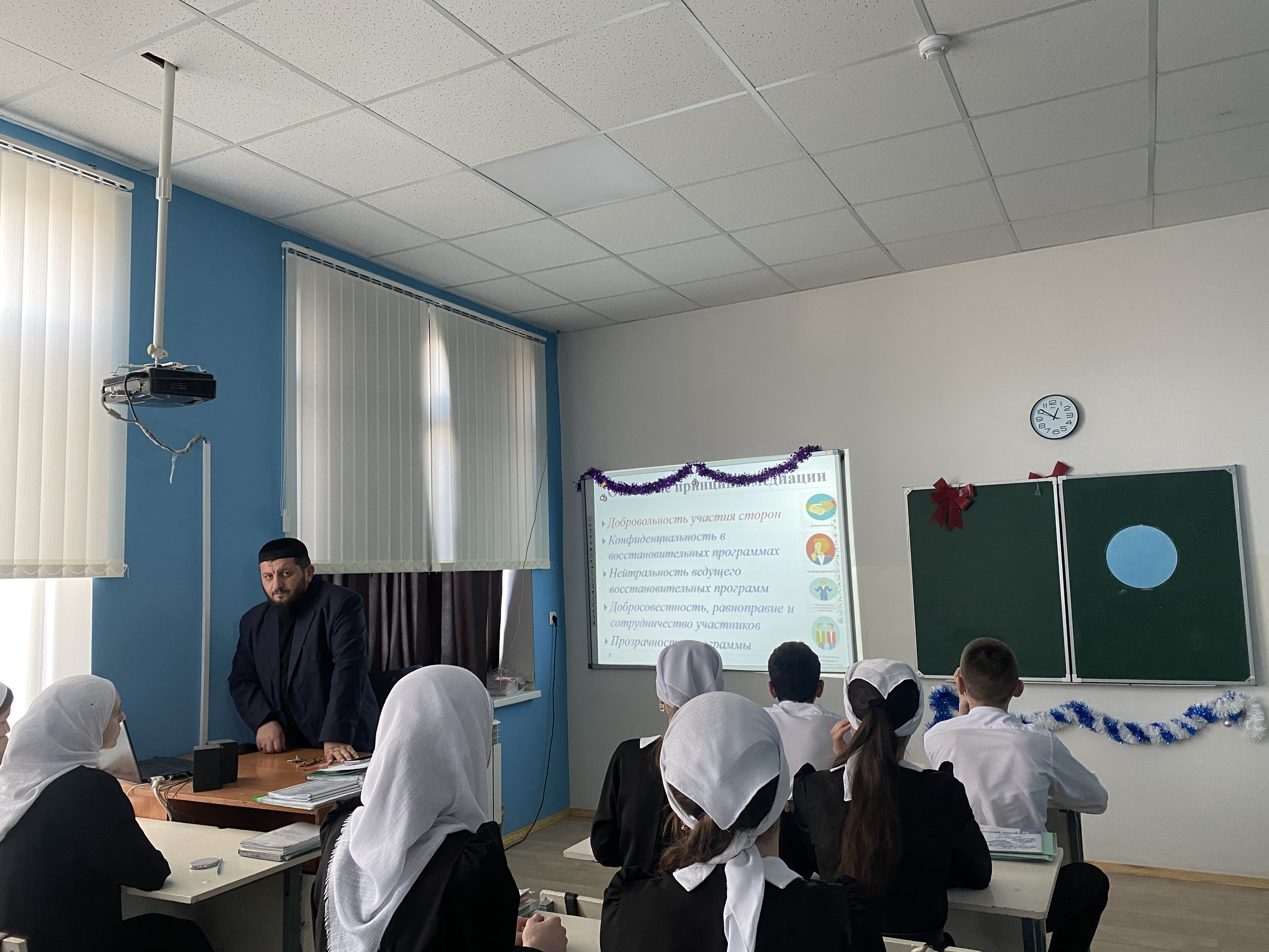 20.12.202420.12.2024 г. Заместитель директора по ВР провел беседу с обучющимися 8-х классов на тему "Что такое школьная служба медиации". Он подробно объяснил детям, что школьная медиация призвана помогать всем участникам образовательного процесса в создании условий для снижения конфликтности, проявлений агрессии, физического и психологического насилия. Другими словами это «школа социального взаимодействия» или «школа коммуникации». Это возможность избежать конфликта поколений, защитить всех, кто участвует в образовательной деятельности. Школьная медиация способствует воспитанию личности каждого - и ребенка, и взрослого. Данное направление способствует обучению бережного отношения друг к другу в детско-взрослых отношениях, возможности разрешить конфликт, сохраняя партнерские отношения, профилактике агрессивных проявлений и насилия среди детей, подростковой преступности, чтобы умело и компетентно разрешать, а еще лучше предотвращать конфликты.